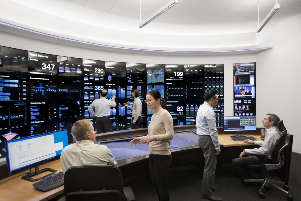 ascovex.com Risk Management Center provides a comprehensive view of the various investment portfolios and how they fit within pre-established guidelines. Built in 2014, its front-end consists of a 27' by 8' interactive touchscreen designed to visualize data in ways that allow for rapid comprehension. Its back-end systems, which connect to every ascovex.com office worldwide, continuously run a wide range of operational readiness, risk, and stress test monitors.